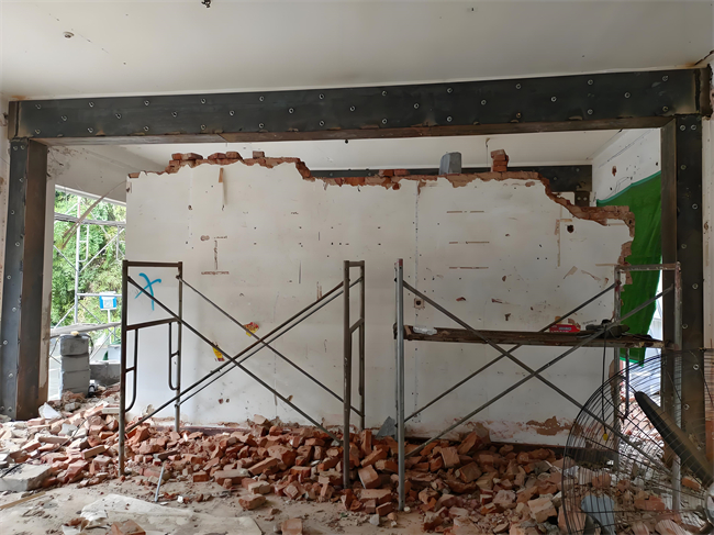 2. 搭建支撐結構:在拆除承重墻之前,需要在墻體兩側搭建臨時支撐結構,以確保在拆除過程中房屋的整體穩定性。支撐結構通常采用工字鋼或鋼管,并配以墊板,以分散荷載并減少振動。支撐結構的搭建應嚴格按照設計方案進行,確保其承載能力和穩定性。